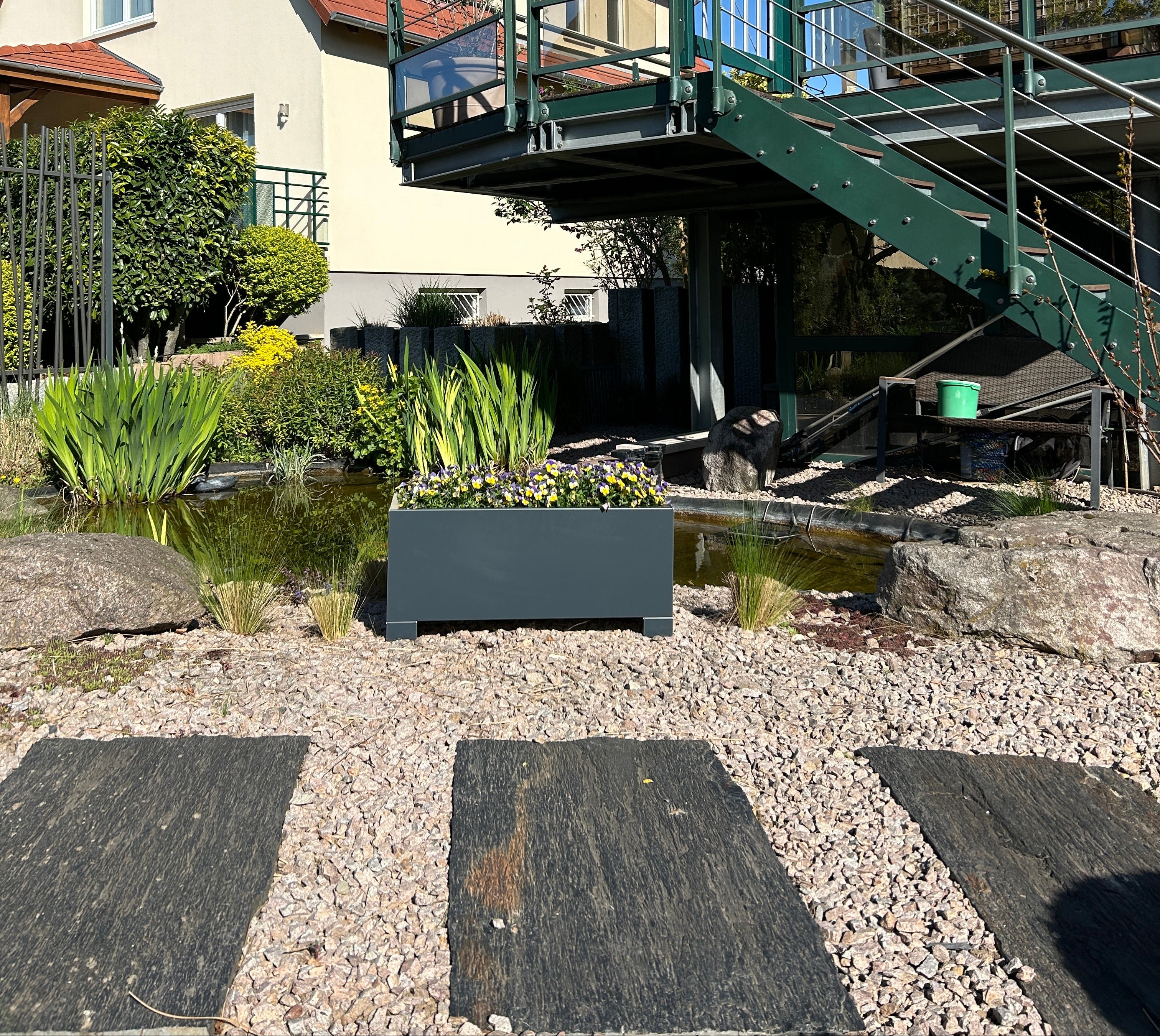 Fabriquée en aluminium ou en acier corten, cette jardinière offre une durabilité nettement supérieure aux modèles en plastique.